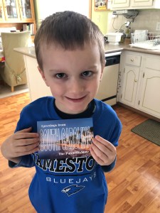 Gabe is using Little Passports to dream of warmer places. He says “I can sign in then we can go to the airport.” Quite the travel agent!