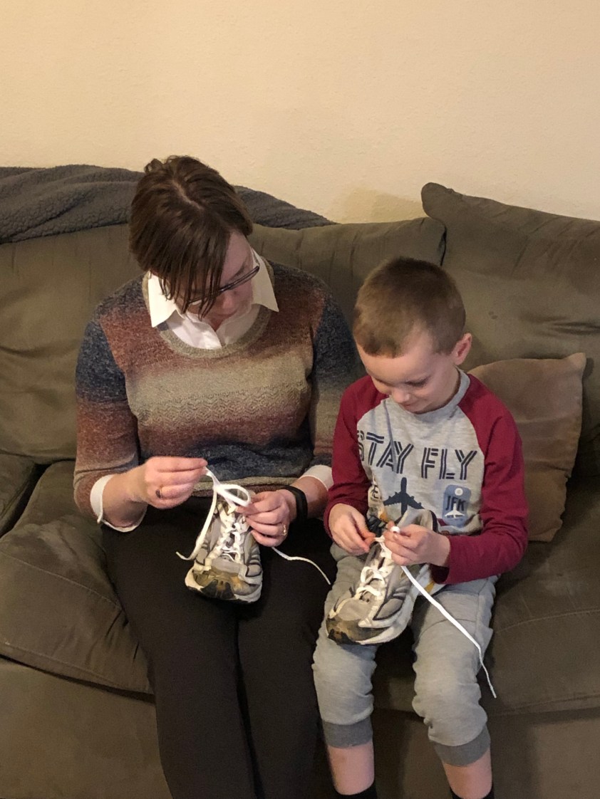 Tying shoes