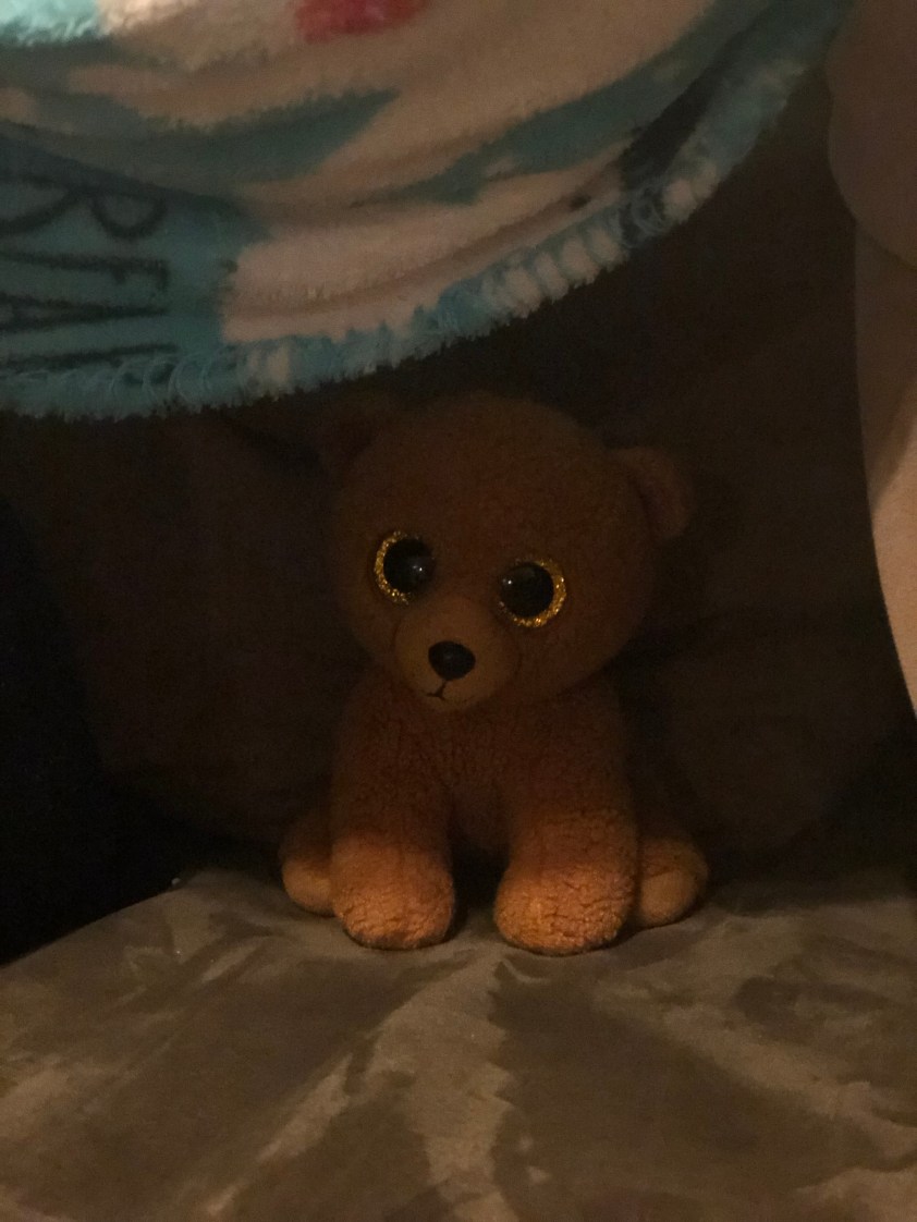 Brownie the bear made a cave on our couch.