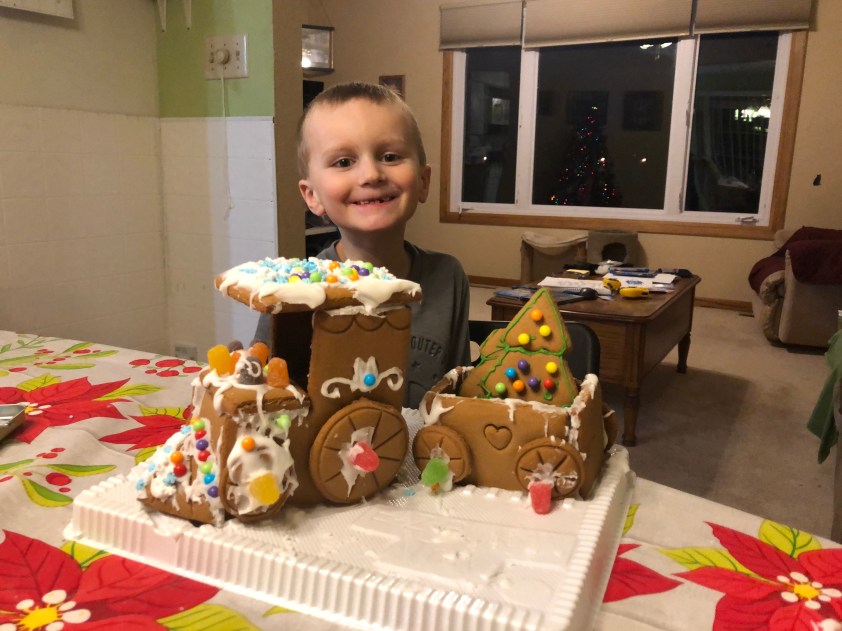 Gabe has named his bear Gabriel. We are on our way to see Grandma Jean.